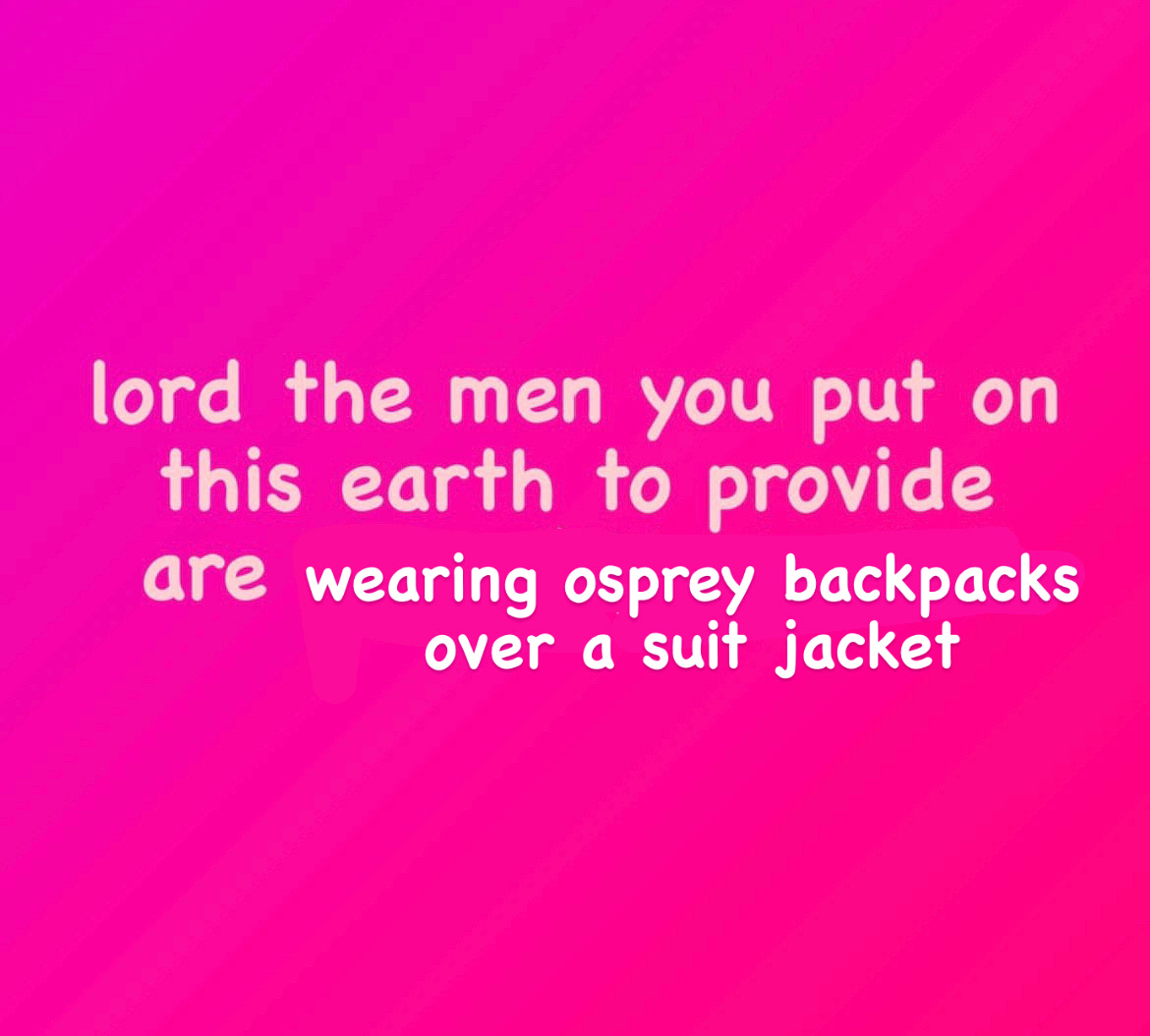 Upon further examination (using my feminine intuition), I’ve come to the conclusion that backpacks are a psyop. We’ve been brainwashed by Big Backpack, which is under the thumb of Big Tech. As Britney Jean Spears once said, “This is a conspiracy theory that I am actually interested in.”